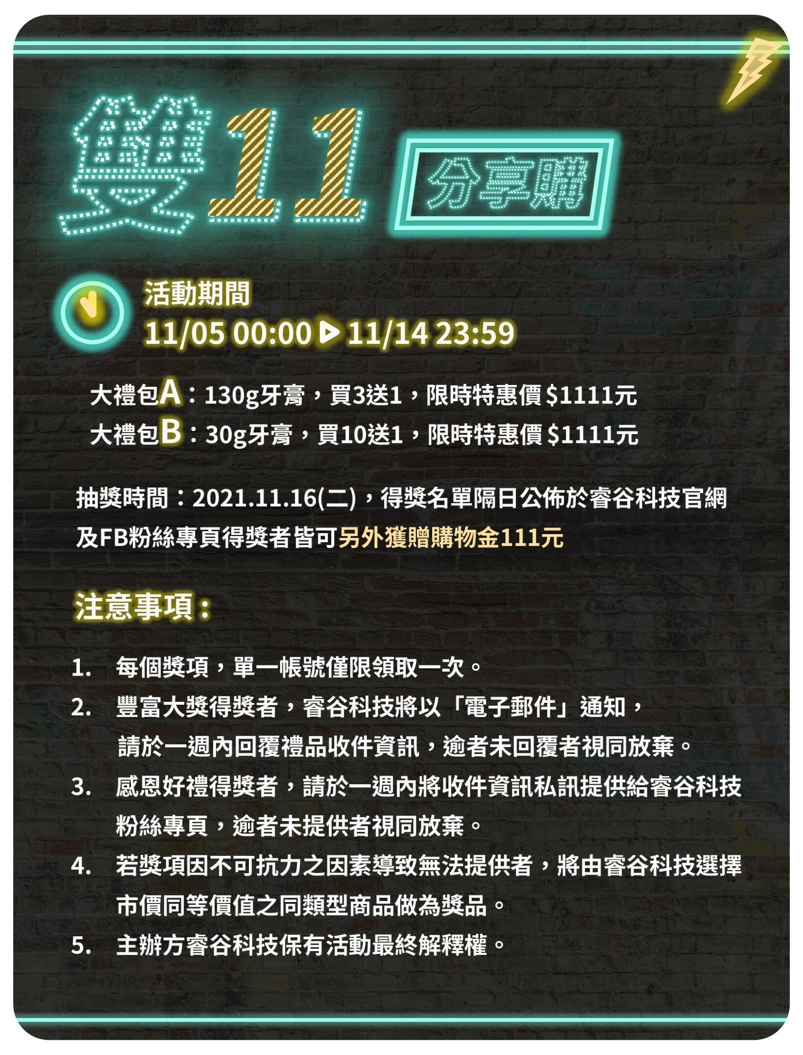 雙11活動開獎中~名單出來啦!