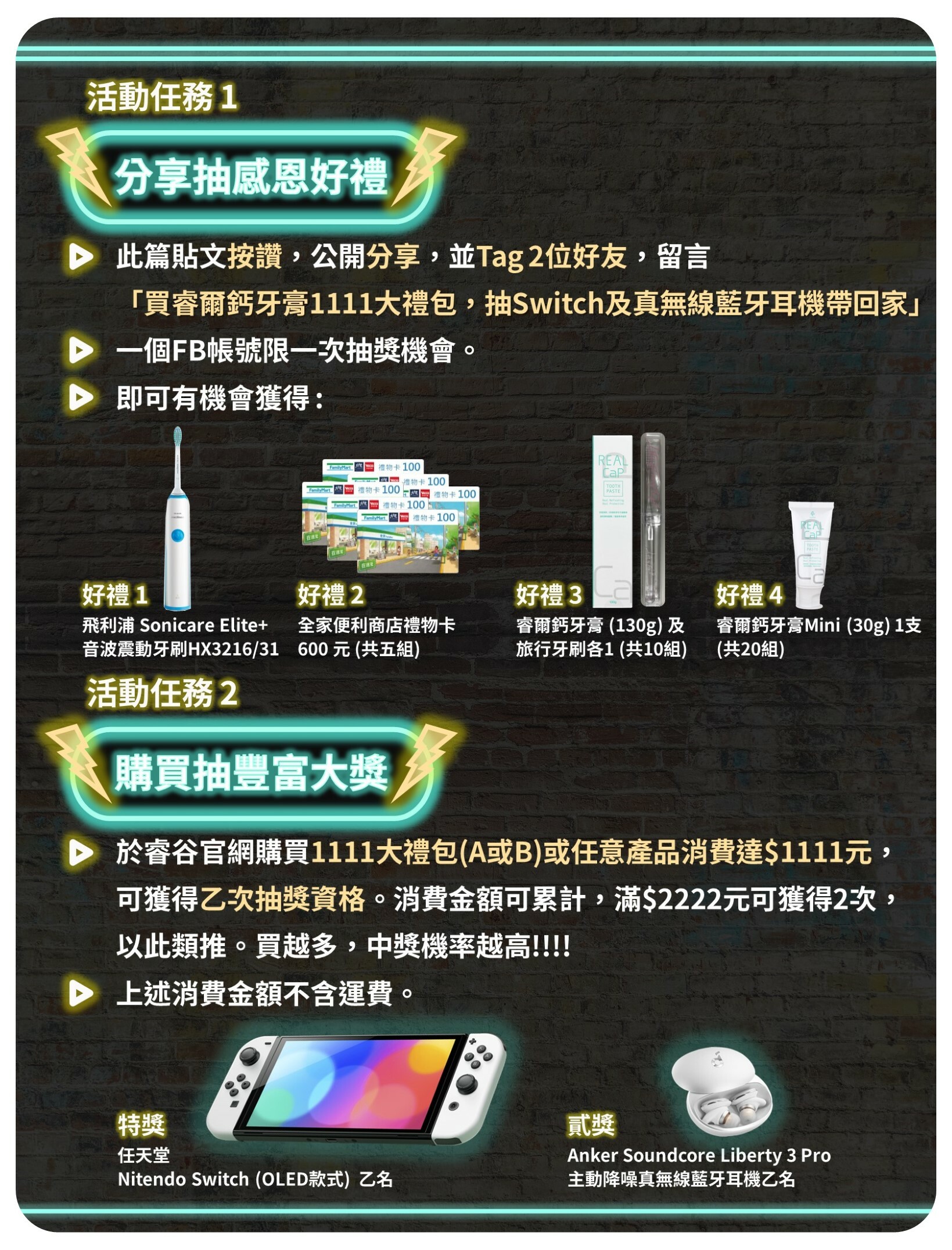 買睿爾鈣牙膏1111大禮包,抽Switch及真無線藍牙耳機帶回家