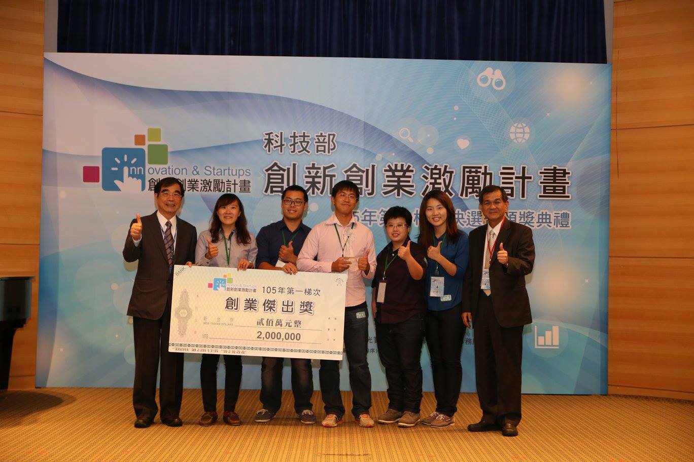 由科技部指導,國家實驗研究院科技政策研究與資訊中心與光寶集團共同主辦的「創新創業激勵計畫105年第一梯次決選暨頒獎典禮」,於7月1日下午在光寶企業總部1樓國際會議廳舉行,群雁生醫、控骨立、TAIWAN-ATM、高雄驅動科技股份有限公司、ChaseWind等五隊獲得「創業傑出獎」,各獲得企業贊助之100萬元創業基金,以及科技部提供之100萬元獎勵金與55萬元補助金。除前述5隊獲得「創業傑出獎」外,白花傳奇、懷瑟格智慧檢測(Wiserger Smart Detection)、精矽膜、PicSee、SkySentry等5隊則獲得「創業潛力獎」,各可獲得55萬元補助金。